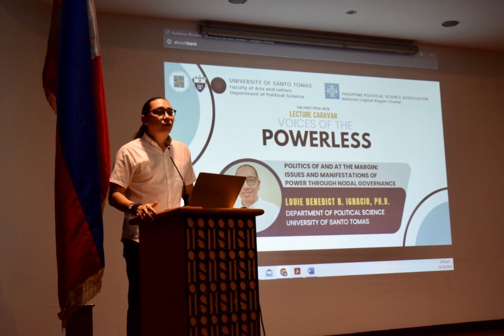The Philippine Political Science Association – National Capital Region Cluster held its first Lecture Caravan series at the Thomas Aquinas Research Center, University of Santo Tomas, last October 26, 2023. This particular Lecture featured Dr Anthony Lawrence Borja from De La Salle University and Asst. Prof. Louie Benedict Ignacio, PhD, Chair of the UST Political Science program and Member of the PPSA Board.