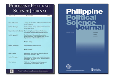 The leading academic journal on Philippine politics and government, the PPSJ will also provide an annual analytical review of the most significant political events and personalities in the country starting in the 2010 issue. In March 2012, the PPSJ was included in the Social Sciences Citation Index. The PPSJ is currently published bi-annually by The Taylor & Francis Group. Click here to visit our Taylor & Francis Group page.